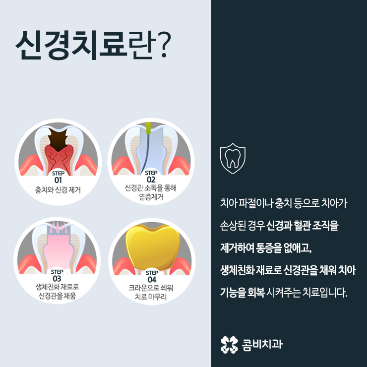 충치 치료 중에서 통증이 심하다고 알려져 있는 것은 바로 신경치료 입니다. 신경치료가 필요할 정도로 치아에 손상이 발생한 경우에는 이미 치아의 손상 만으로도 통증을 느낀 상태에서 치과에 방문하게 되고 신경치료 과정을 살펴보더라도 신경조직과 염증, 혈관을 모두 제거하는 과정에서 느끼는 신경치료 통증을 아주 힘든 경험으로 기억하는 분들도 많을 겁니다